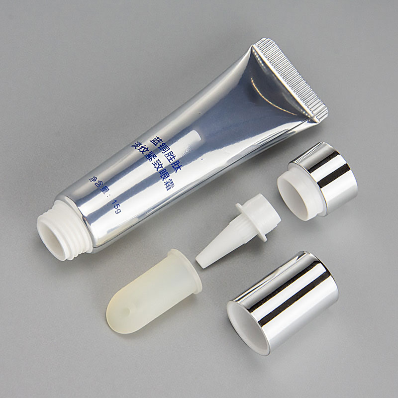 tabung kemasan esensi tabung kosmetik lembut krim perawatan bibir mata pemerasan yang disesuaikan dengan aplikator logam